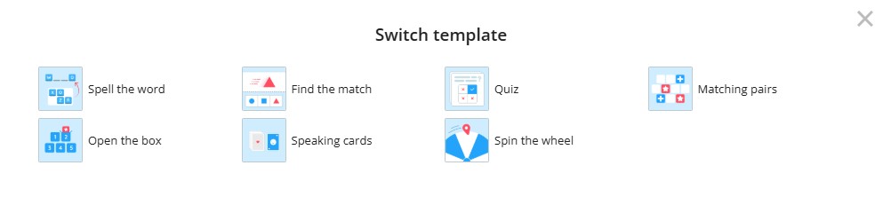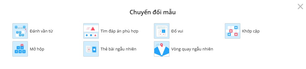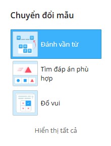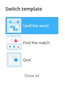 Các bạn chơi xong dạng template mặc định là "Spell the word" (Đánh vần từ) có thể chọn Template (mẫu) khác để chơi bằng cách nhấn vào dạng template bên dưới (chọn showall) để xem hết 7 template